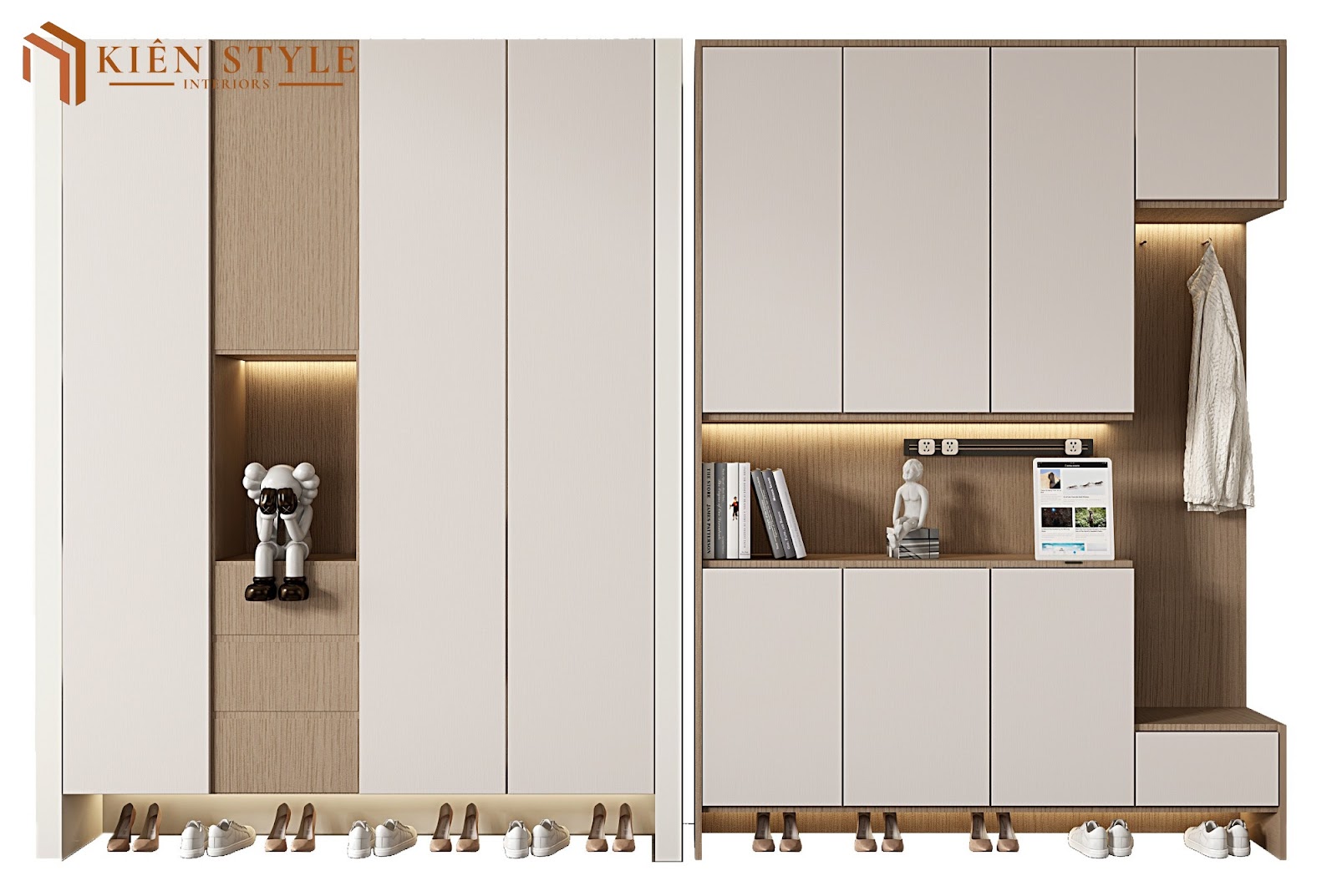 Dưới đây là một số hình ảnh thực tế của những mẫu tủ giày từ Kiên Style Interior, giúp bạn nhìn rõ từng đường nét và chi tiết: