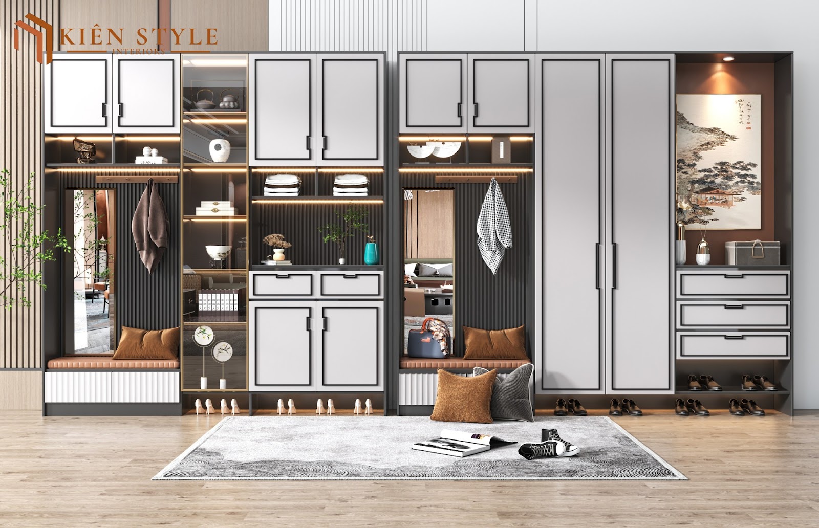 Dưới đây là một số hình ảnh thực tế của những mẫu tủ giày từ Kiên Style Interior, giúp bạn nhìn rõ từng đường nét và chi tiết: